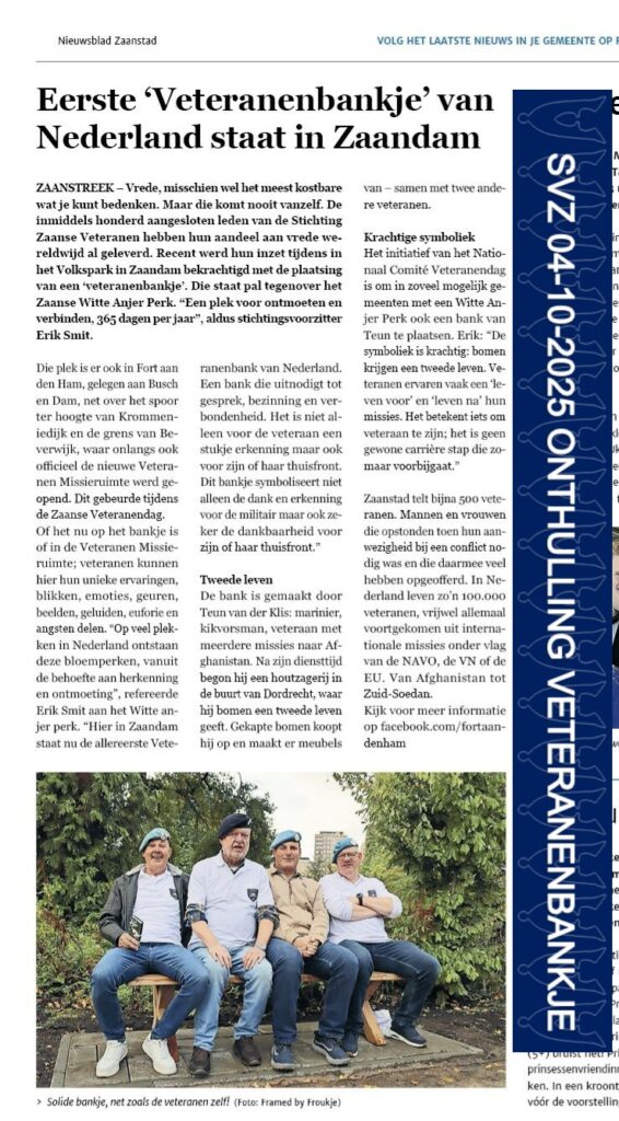 De Onthulling van het veteranenbankje